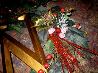 Start with your basic wreath - I happened to have one with a few berries already in it, but the most basic, inexpensive green wreath will be perfect.