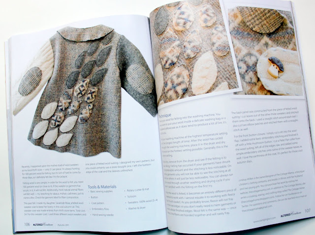 It happened again - The Cottage Mama was published in the Fall 2011 Issue of Altered Couture Magazine! I'm so thrilled to be part of this wonderful publication for the second time and I have to admit, I don't think I will ever get tired of seeing my work in print. This issue of the magazine is full of all sorts of tutorials and inspiration for altering your fall wardrobe. Oh, how I love fall!